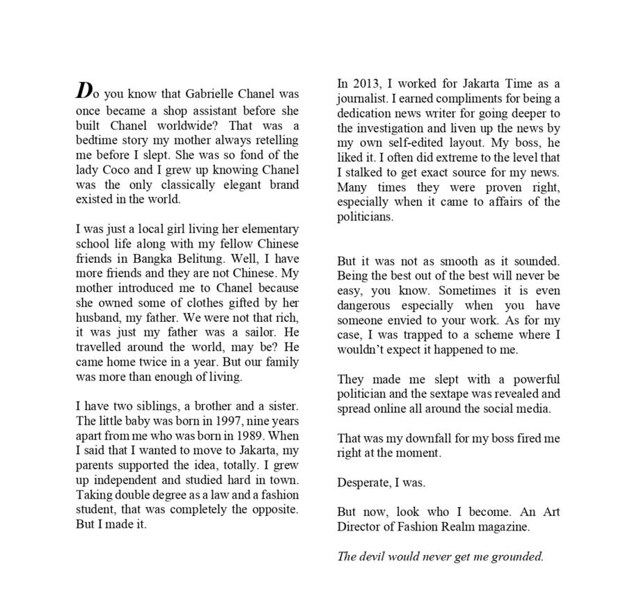 | Occupation | Art Director of FASHION REALM Magazine since 2020; (Prev: Senior Journalist of Jakarta Time 2013-2019) |